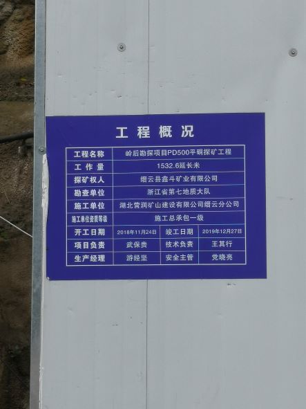 縉云縣鑫斗礦業(yè)有限公司是一家有限責(zé)任公司,成立于2007年8月7日,法定代表人:張圣,經(jīng)營范圍:螢石(普通)地下開采;螢石礦勘探;螢石及螢石工藝品加工、銷售。 礦山新建項(xiàng)目名稱為浙江省縉云縣大源鎮(zhèn)嶺后螢石礦,擬建生產(chǎn)規(guī)模15萬噸/年。該礦山項(xiàng)目探礦權(quán)于2005年9月首次設(shè)立,委托浙江省第七地質(zhì)大隊(duì)組織實(shí)施。最新核發(fā)的探礦權(quán)證有效期限為2020年05月26日至2022年05月26日,勘查范圍由22個(gè)拐點(diǎn)組成。