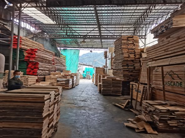 企業(yè)地址為浙江省杭州市臨安區(qū)昌化鎮(zhèn)九龍村七井巖1號,企業(yè)主要建筑物分布在兩個片區(qū),東片區(qū)和西片區(qū)相隔一條鄉(xiāng)道Y462,片區(qū)內(nèi)所有廠房、倉庫、輔助用房采用鋼棚連成一片。企業(yè)主要生產(chǎn)工藝包括原木開料、板材烘干、刨車成型、精加工、打孔、拋光、打磨、砂光、檢驗、包裝、入口等,不同的產(chǎn)品工藝略有差別。