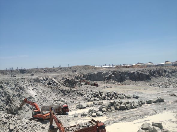 舟山市岱山縣大小魚山促淤圍涂工程是舟山(魚山)綠色石化園區(qū)建設(shè)項(xiàng)目的前期工程之一,工程將形成555公頃建設(shè)用地,故設(shè)置舟山市岱山縣大小魚山促淤圍涂工程(一期)岱山縣高亭鎮(zhèn)漁山村大、小魚山島建筑用石料(凝灰?guī)r)礦,該礦山為工程性礦山,開采的石料部分用于海堤和成陸工程的填方料,部分加工為各級(jí)碎石用于石化基地建設(shè)。舟山市岱山北部促淤圍涂投資有限公司于2015年6月24日取得了采礦許可證(證號(hào):C3309212015067120138721),有效期至2018年6月24日。2016年1月26日礦山采礦權(quán)人變更為舟山石化園區(qū)投資發(fā)展有限公司。礦山于2016年6月通過安全設(shè)施竣工驗(yàn)收投入正常開采。通過礦山開采及圍涂形成的土地分階段移交浙江石油化工有限公司,由浙江石油化工有限公司開展綠色石化基地建設(shè)。礦山2022年6月委托本公司進(jìn)行安全現(xiàn)狀評(píng)價(jià),并取得安全生產(chǎn)許可證。